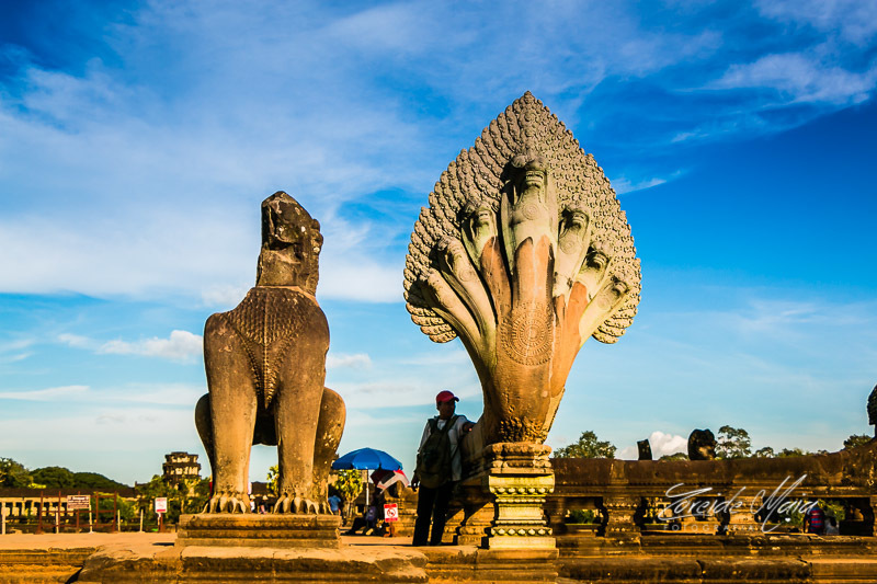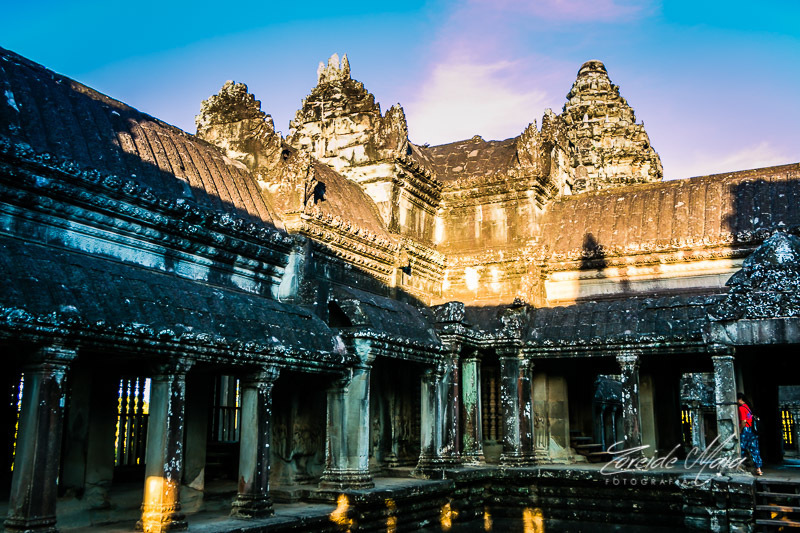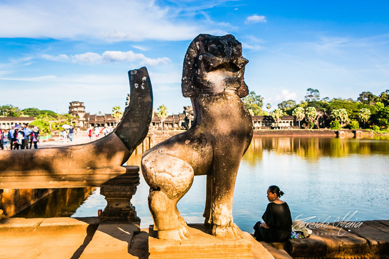 Ao conhecer o Templo de Angkor Wat no Camboja fiquei maravilhada com sua grandiosidade e beleza, é a maior estrutura religiosa do mundo. Angkor se apresenta aos visitantes como um vasto território de floresta tropical com templos e pontes de pedra monumentais e maravilhosos no meio do caminho. Com 1,62 km², este templo foi construído primeiramente como templo hindu em homenagem a Vishnu pelo rei Suryavarman II, mas foi transformado em budista quando a cidade passou a ser governada pelo rei Jayavarman VII.Angkor. Construído com o melhor do estilo clássico Khmer, combina dois planos: o templo-montanha e o templo em galerias, construído depois. Ele foi desenhado para representar o Monte Meru, casa dos devas na mitologia hindu.