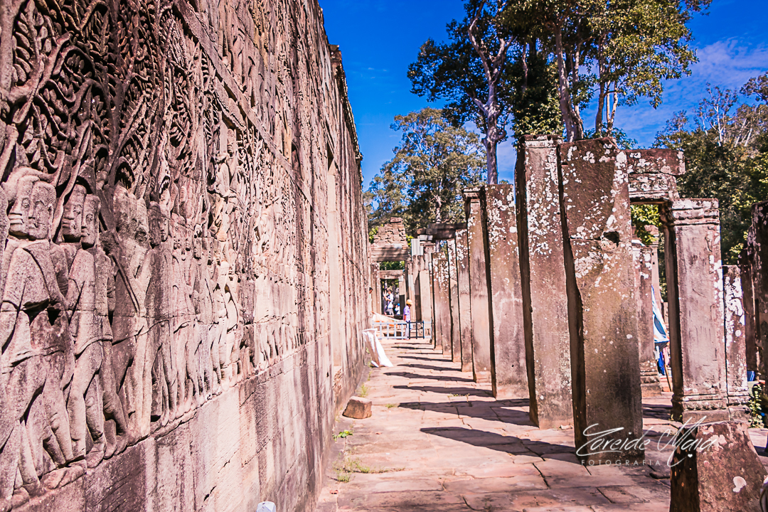 O Bayon é o templo central da cidade Angkor Thom e foi construído por volta de 1190 a.c pelo rei Jayavarman VII (o mesmo do Ta Phrom), cem anos depois do Angkor Wat. Também faz parte do grupo de templos mais enigmáticos: pelo simbolismo, pela própria estrutura e pelas faces em si, que podem ser do rei (que se considerava um rei-deus) ou de “seres iluminados da compaixão” chamados Avalokitesvara ou Lokesvara. Este templo é a expressão do estilo barroco khmer, sem paredes e com a impressão de estar “comprimido”, total oposto do estilo clássico do Angkor Wat.